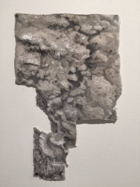 Previous Image Next Image pinkStardust working reminder. Abstracted drawing of nuclear explosion, pencil and chalk on weathered velvet (from ‘skin’ installation, boulder from Zen Garden). 2018