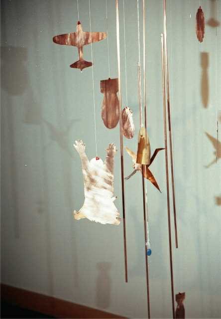 Previous Image Next Image skin gallery installation – detail, wind chime, copper cutouts & copper tubing. 2001