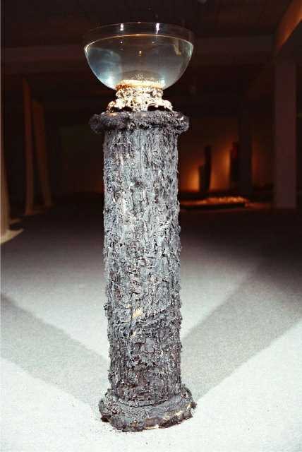 Previous Image Next Image skin installation – detail, Water Offering. Plaster pedestal skinned in monkey fur, burned, topped with punch bowl. “skin” – detail, Offering